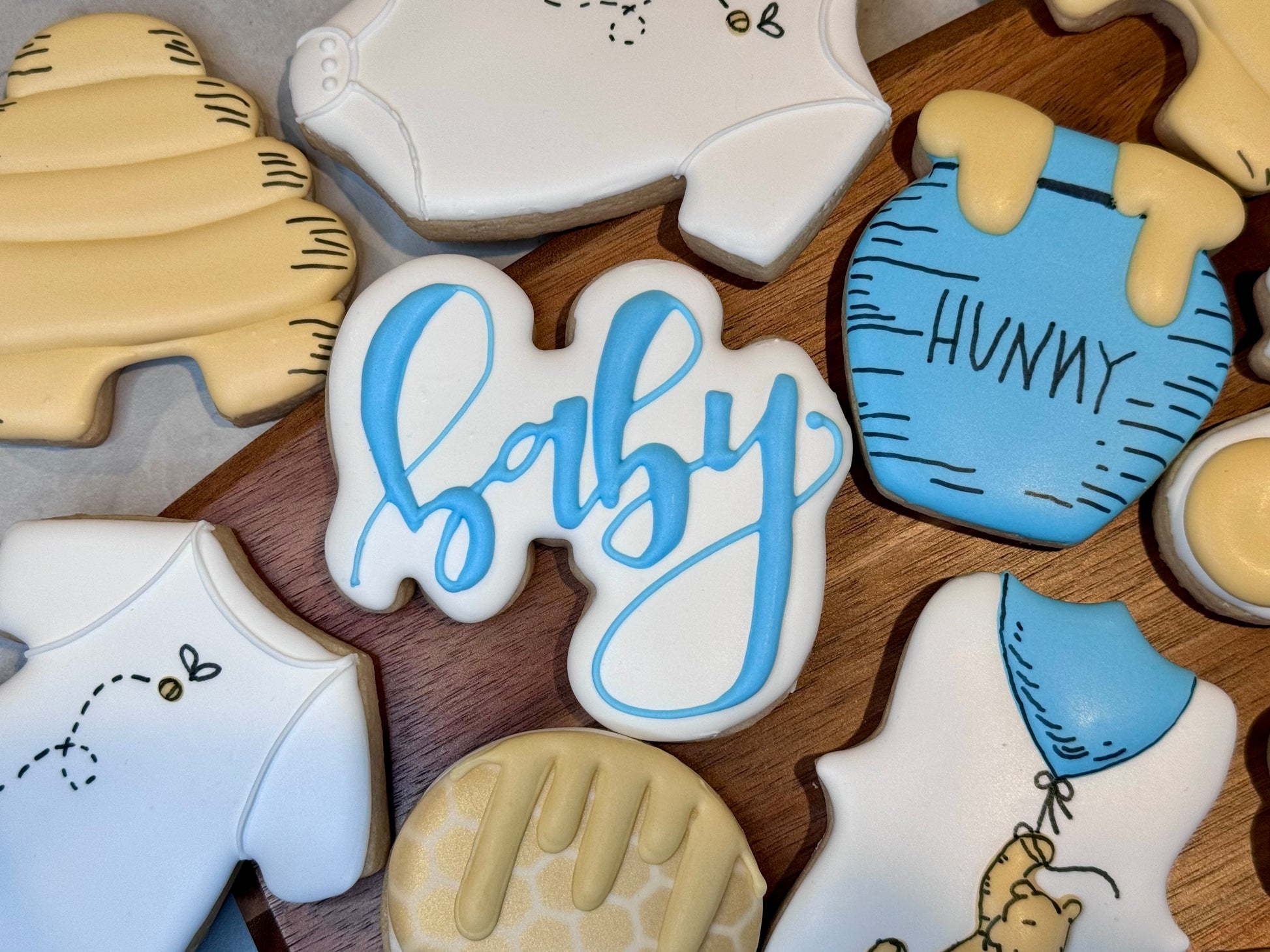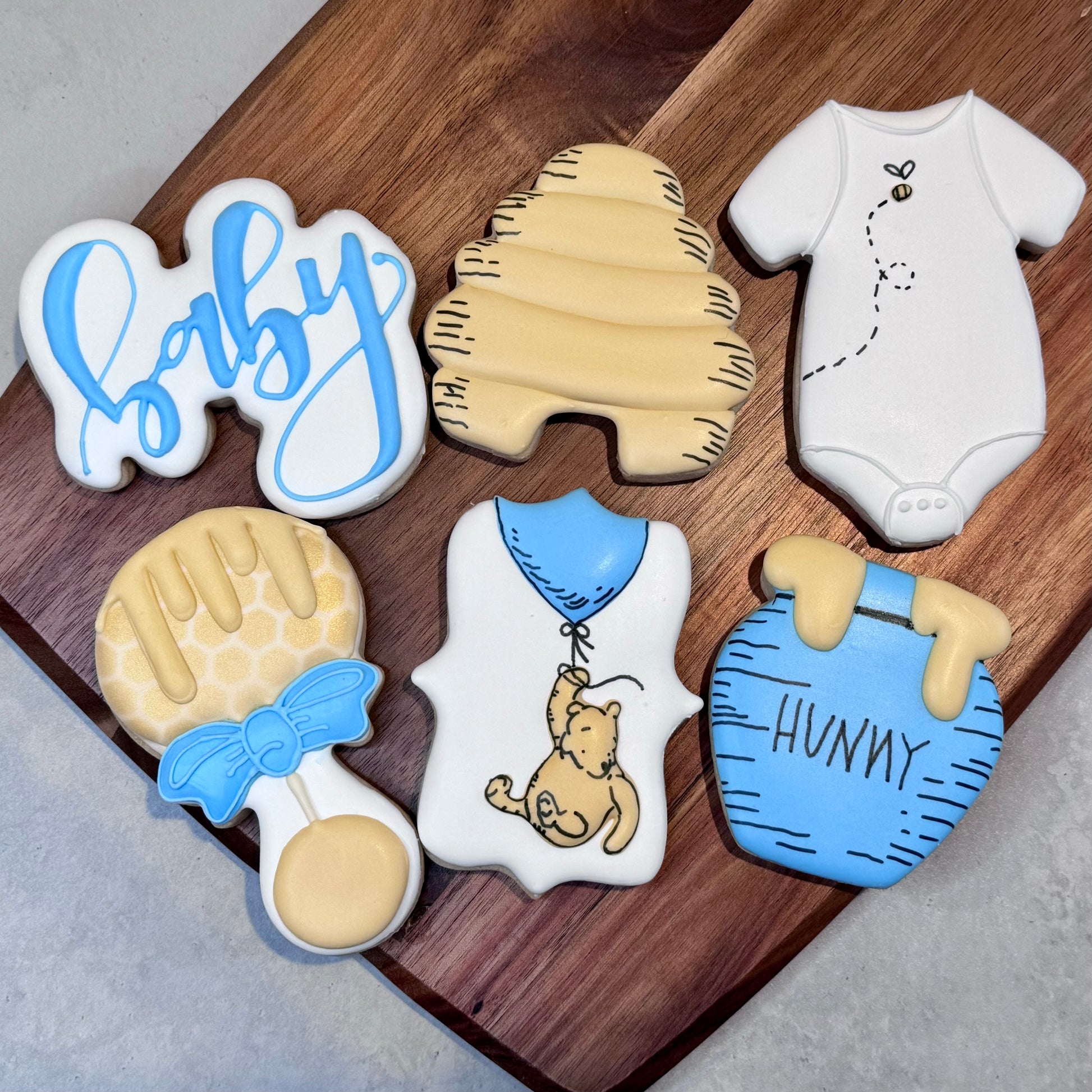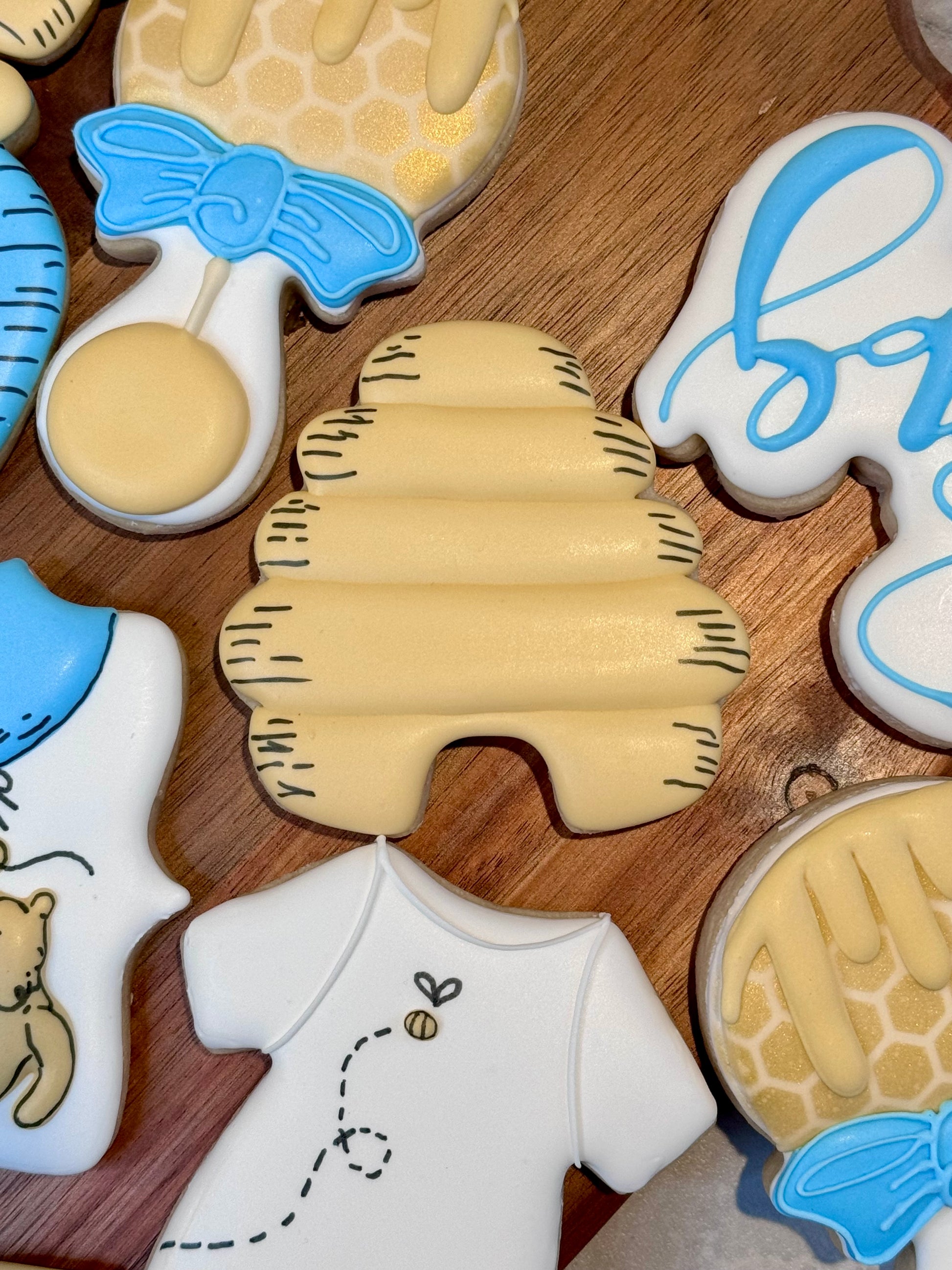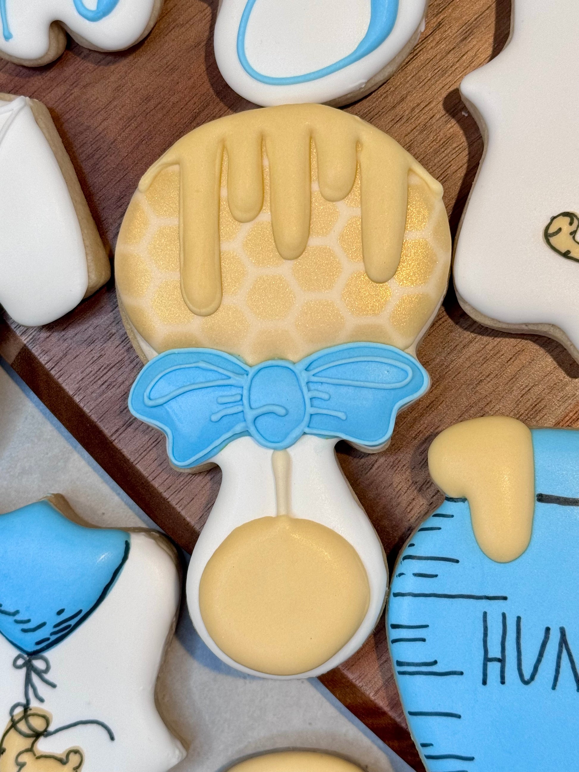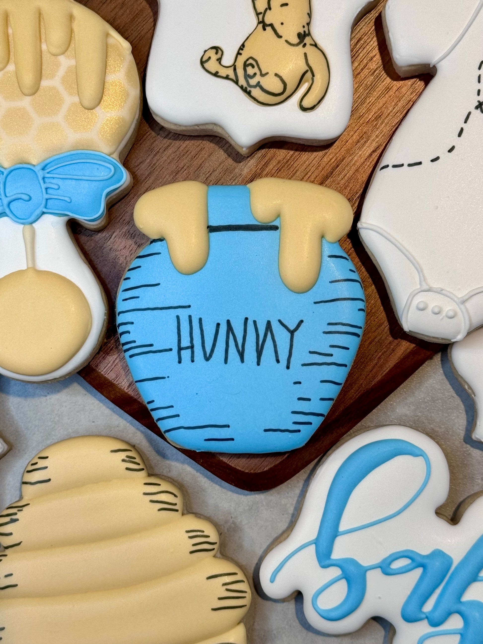 When you are contacted regarding pick up day/time you will also be asked about colors for the “baby” cookie and the hunny pot.