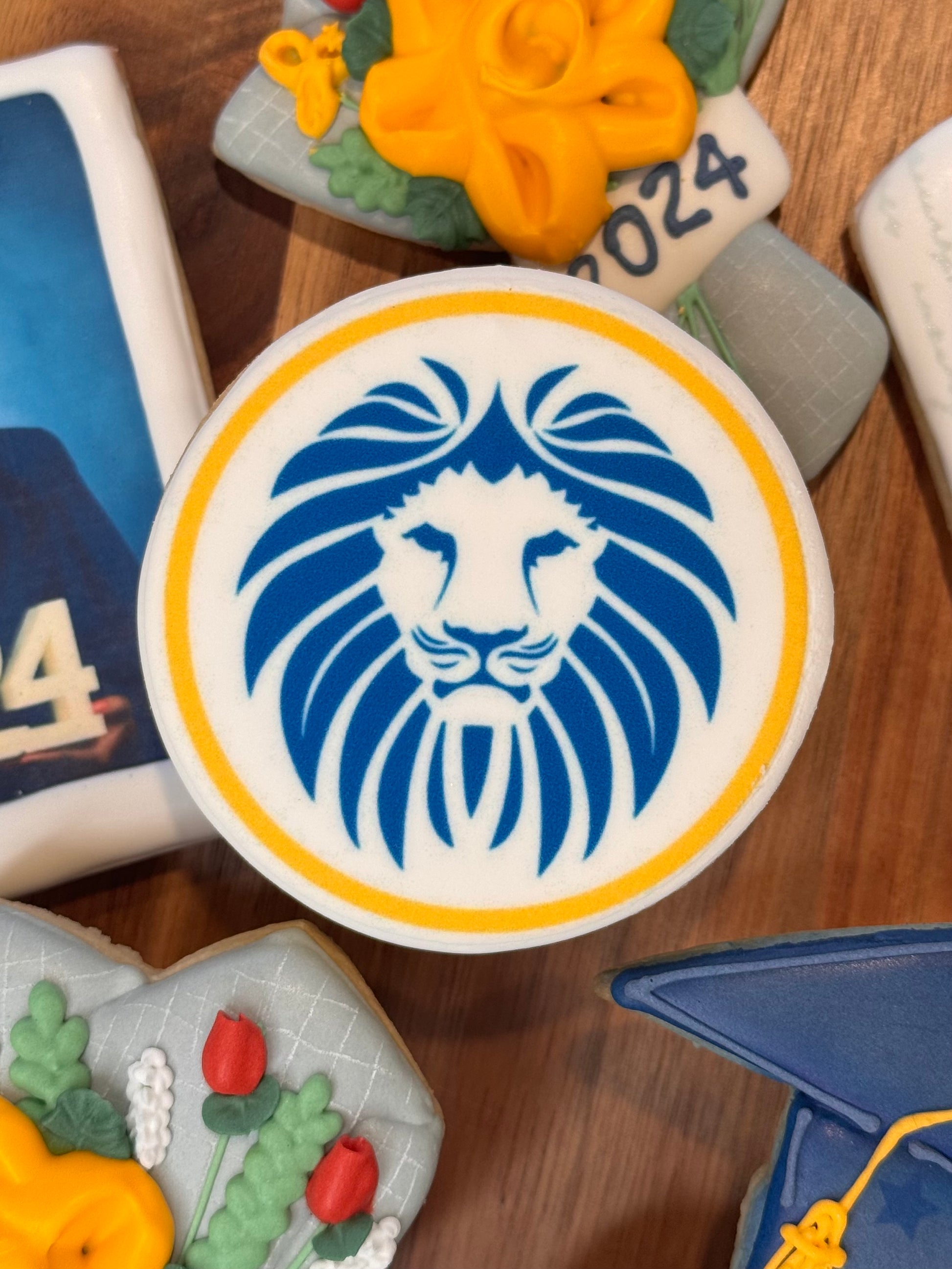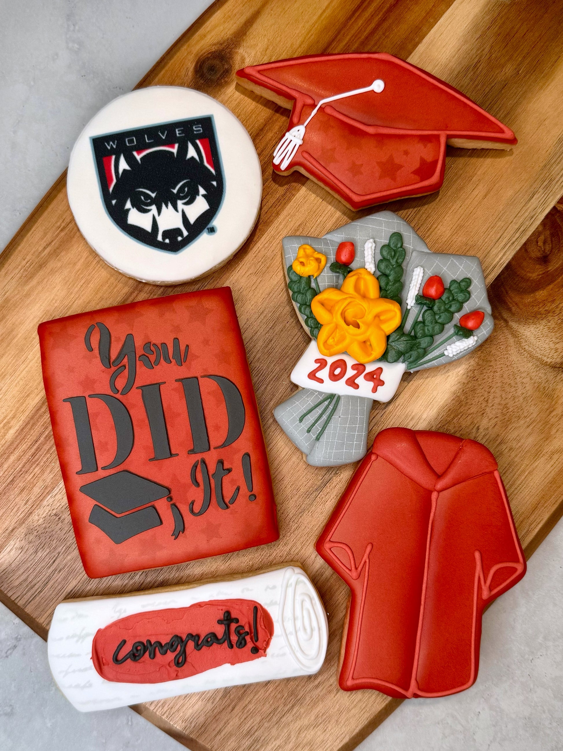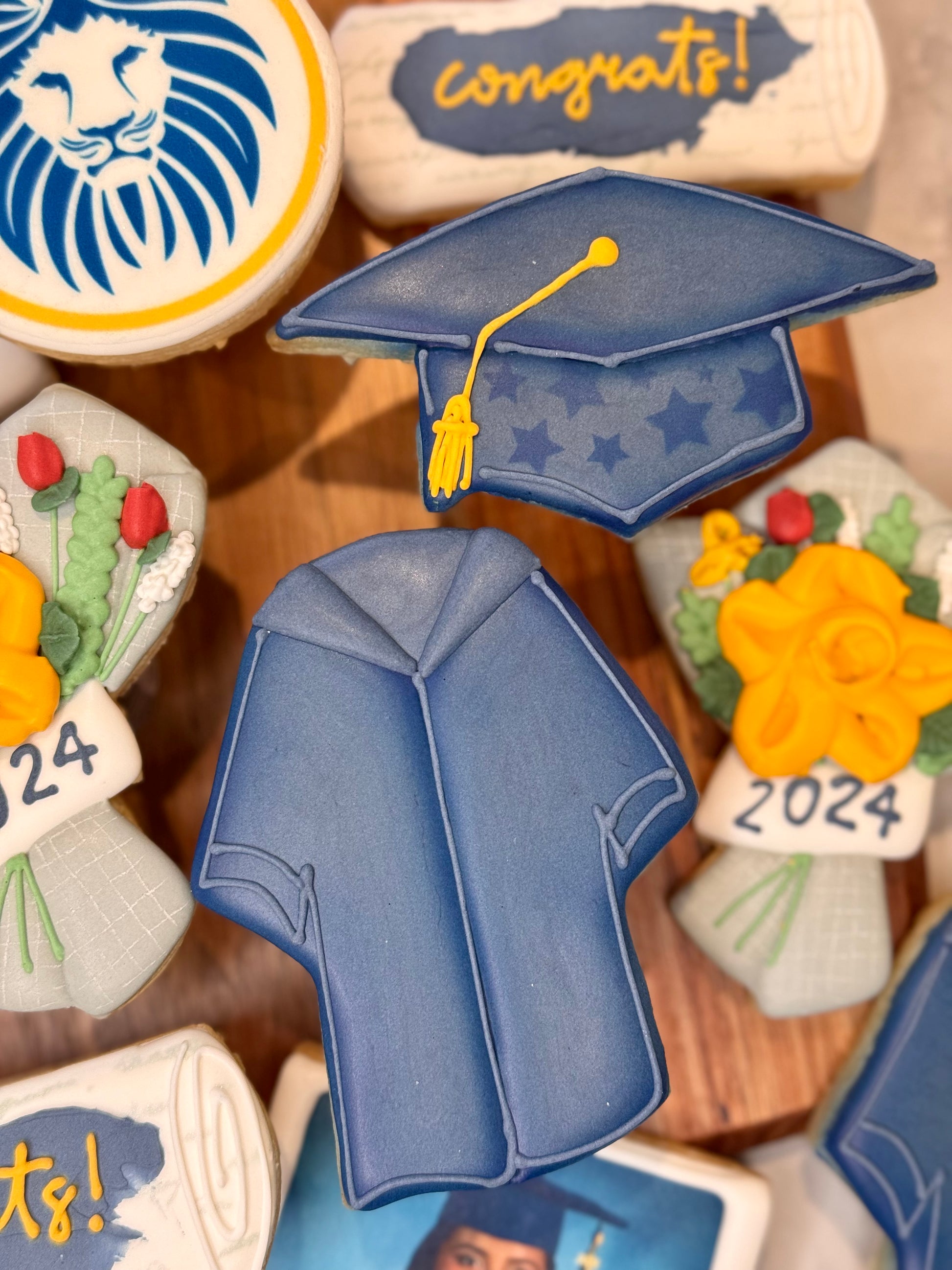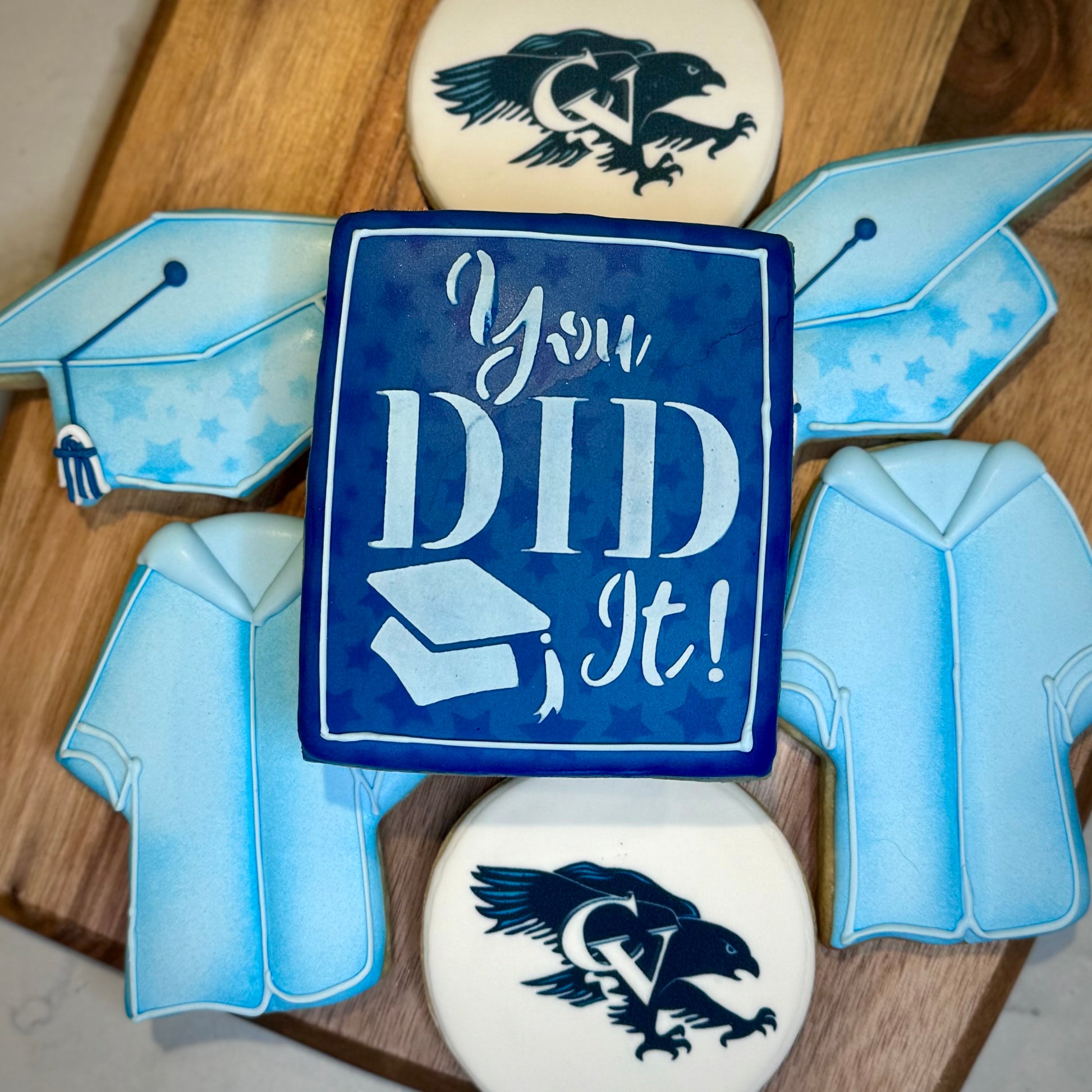 You have the option of adding a school logo on a 3 inch round, a Polaroid graduation picture, and/or a “You Did It!” 3x4 rectangle.