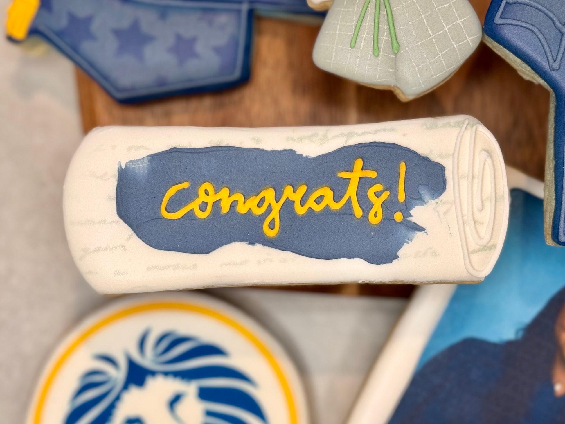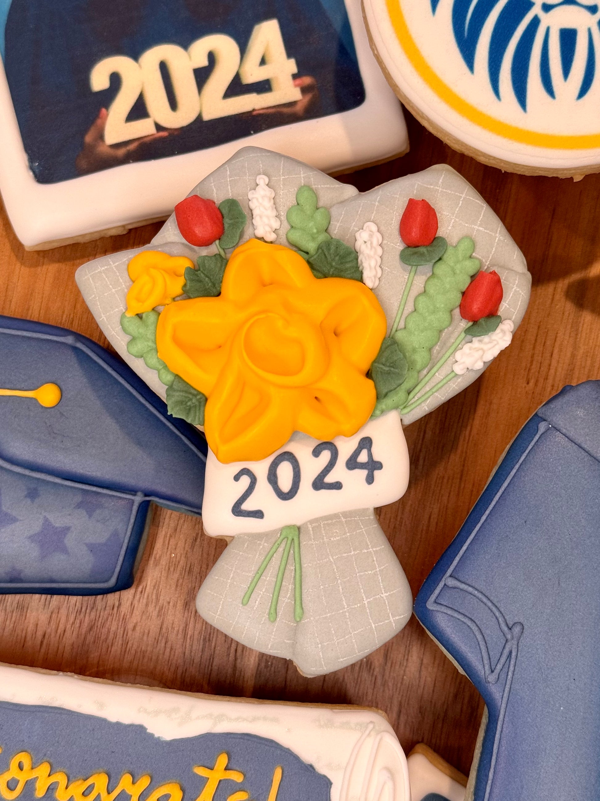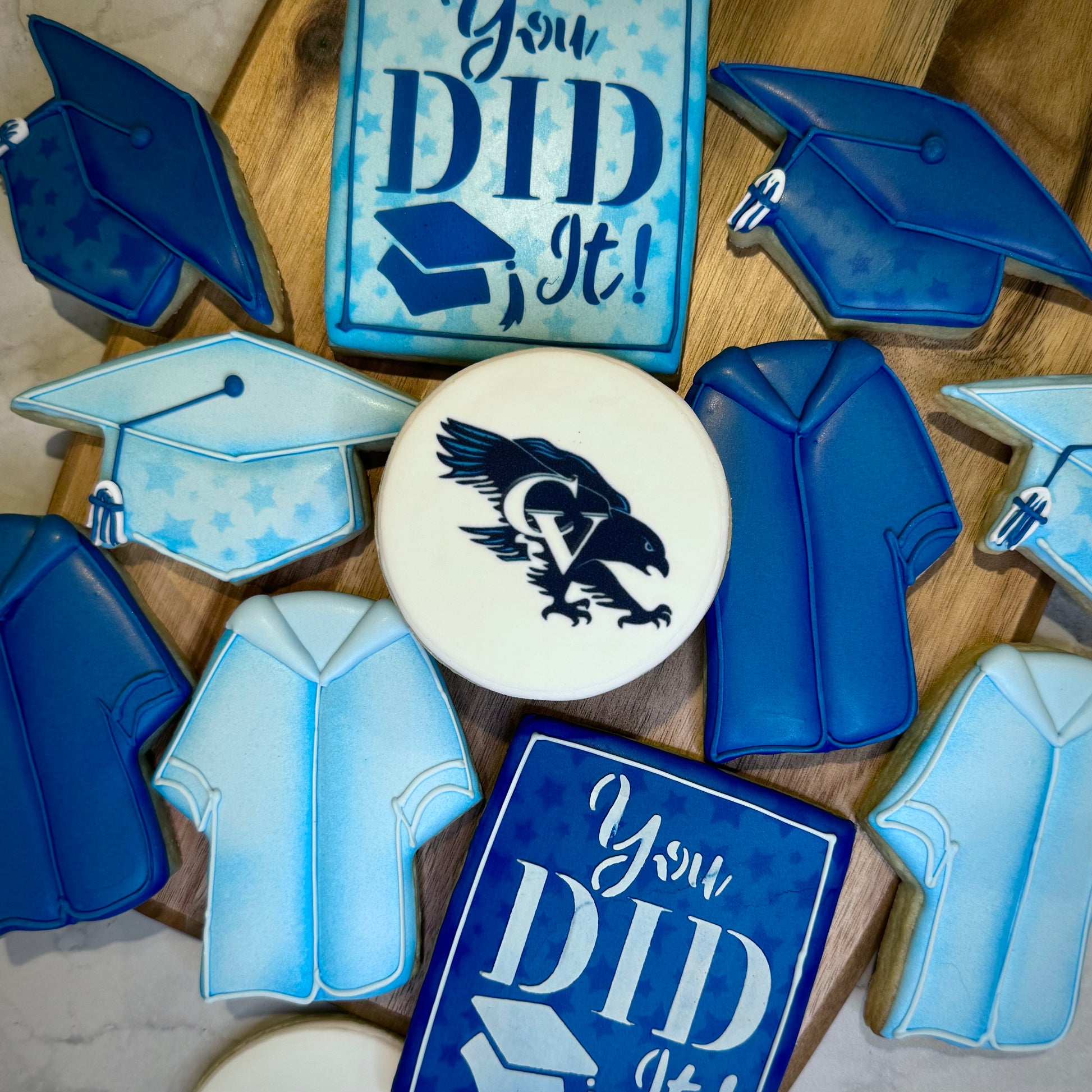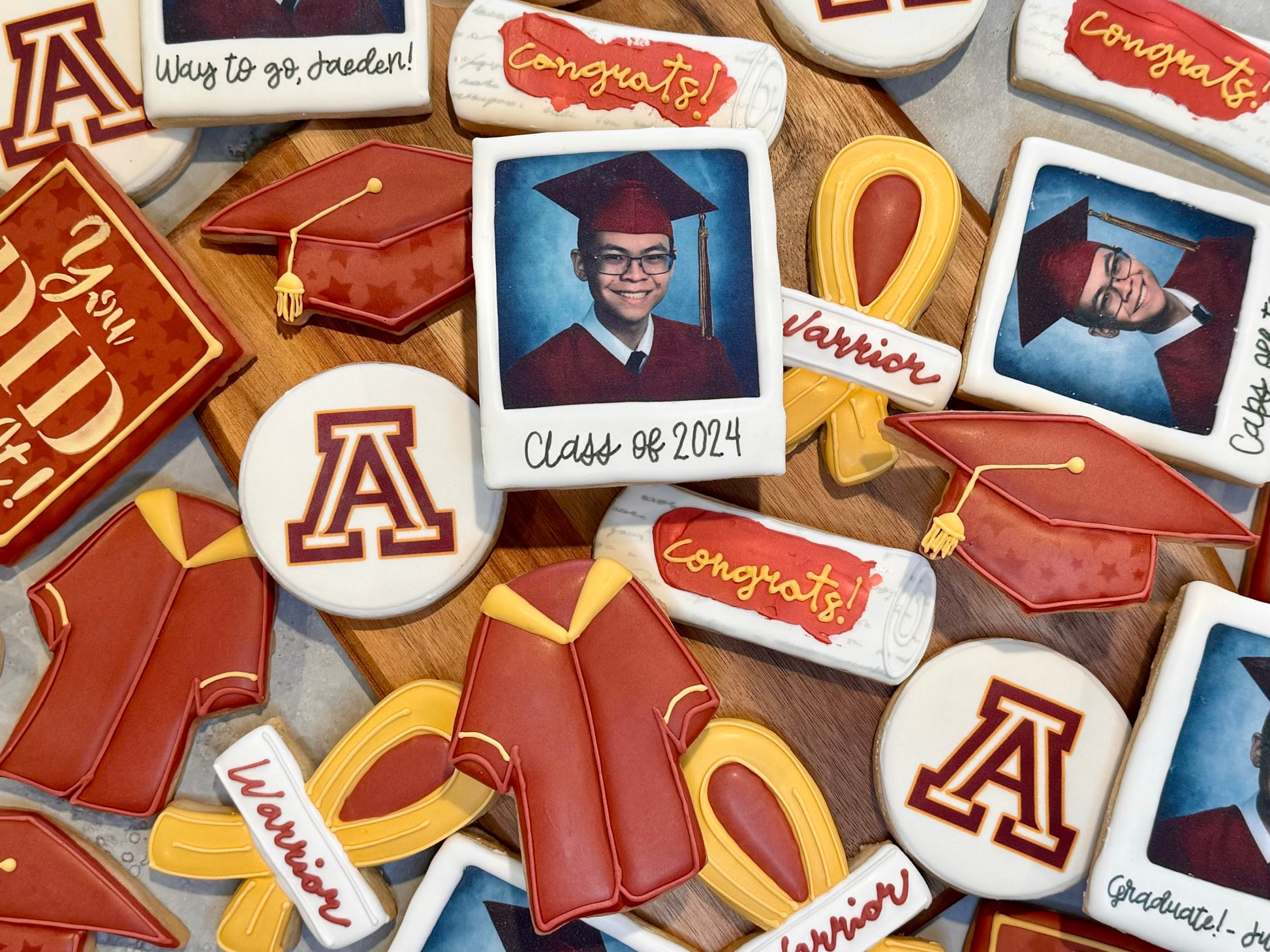 You have the option of adding a school logo on a 3 inch round, a Polaroid graduation picture, and/or a “You Did It!” 3x4 rectangle.