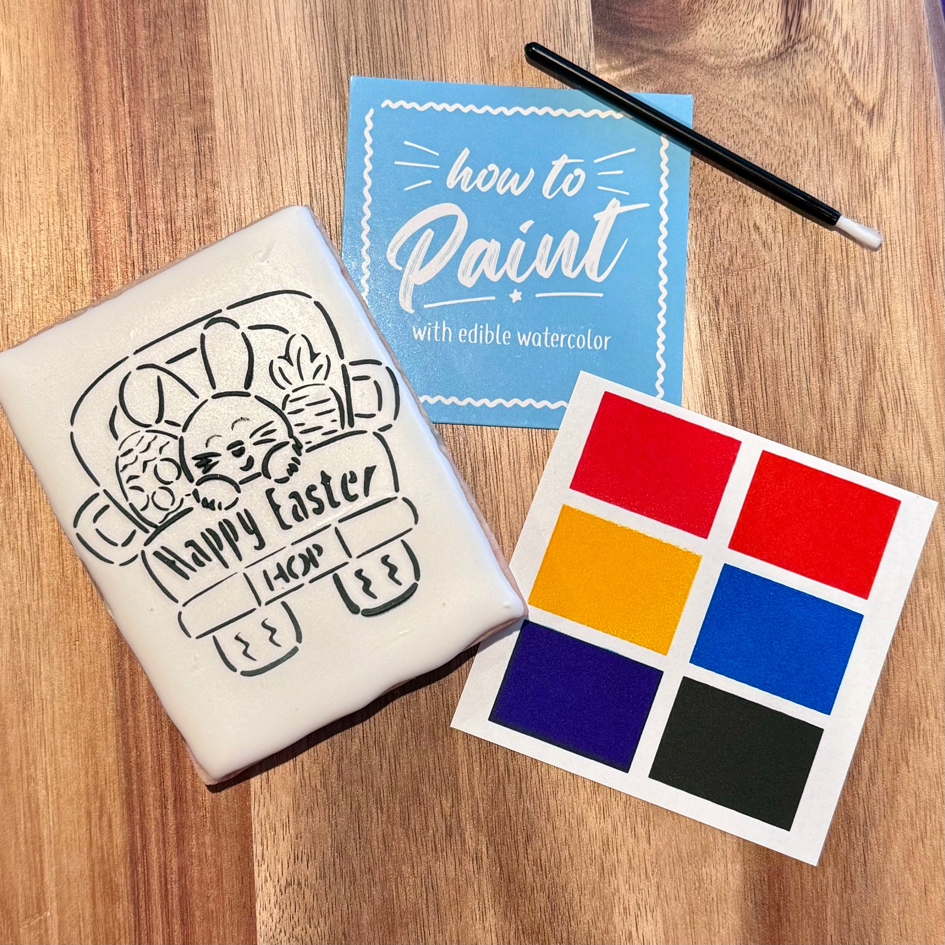 Add a splash of creativity to your Easter celebrations with our "Paint Your Own" Easter sugar cookies from Cookies by Cassie! Each cookie comes with edible paint pallet, a brush, and an instruction card, allowing kids and adults alike to unleash their artistic flair. Perfect for adding an extra layer of fun to Easter baskets, these interactive treats are sure to delight everyone.